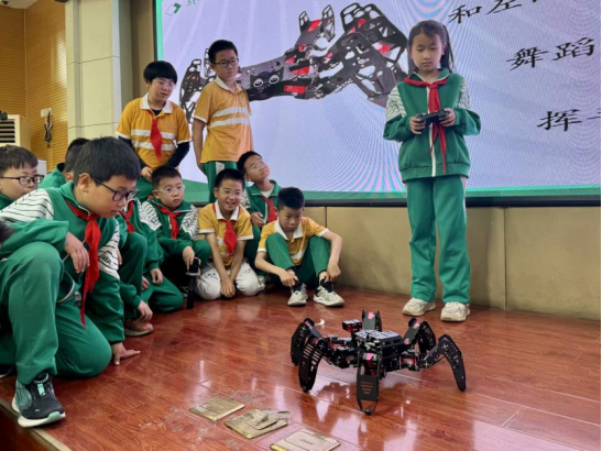 机器人操作展示环节将活动推向了高潮,老师熟练地操控机器人,只见机器人如灵动的舞者,时而精准前进,时而灵活旋转,还能做出各种趣味动作。围观的同学们目不转睛,惊叹声、欢呼声此起彼伏,现场气氛瞬间被点燃,孩子们对机器人的好奇心和探索欲也被彻底激发。
