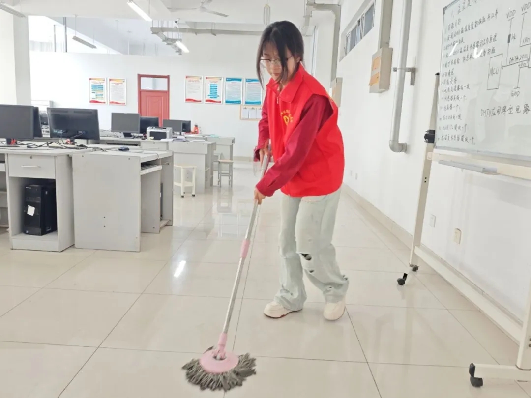 为创建干净舒适的实验室环境,营造良好的学习氛围,用实际行动诠释新时代青年的责任与担当,4月27日,物电学院24级电子信息工程3班级团支部全体成员于启智楼开展实验室环境清洁行动。