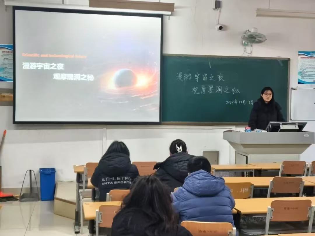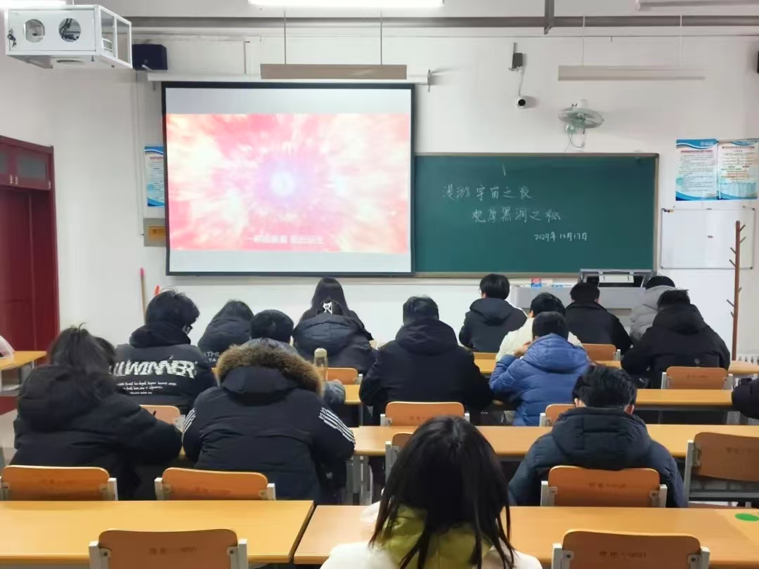 为了激发同学们对天文知识的兴趣,加深同学们对天文学的理解,提高个人的科学素养,物电学院于12月17日在明理楼118教室举办了“漫游宇宙之夜,观摩黑洞之秘”观影活动。
