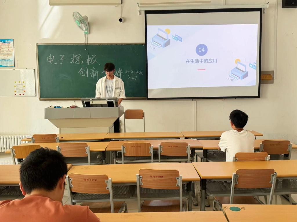 为激发学生对电子科学的兴趣,深化硬件技术认知,培育创新思维,5月27日,物电学院电子科技创新社在明理楼117教室举办开展“电子探极,创新登峰”社团活动。