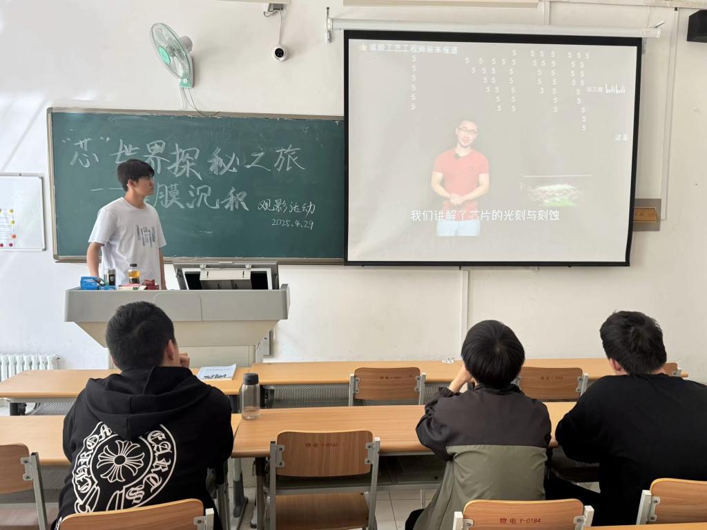 为深化同学们对芯片制造核心技术的认知,推动物理学科与电子信息产业的创新交融,4月29日,物电学院电子科技创新社于明理楼117教室举办“芯世界探秘之旅——薄膜沉积”主题观影活动。