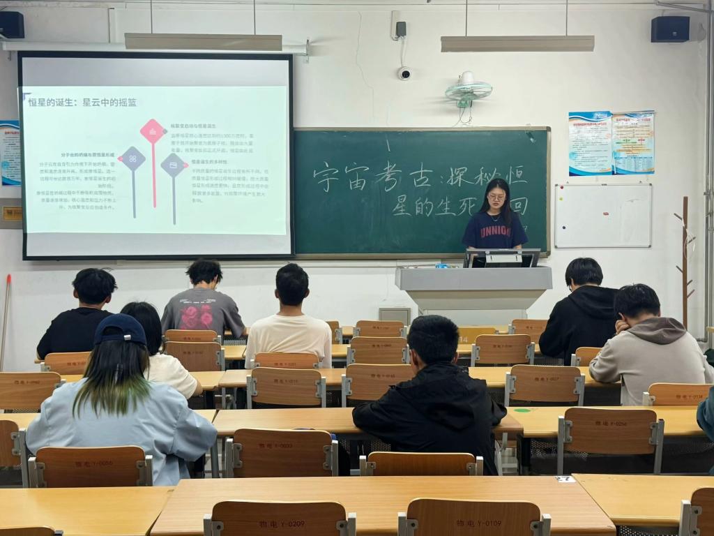 为激发同学们对宇宙科学的探索兴趣,普及天文知识,拓宽科学视野,4月29日,物电学院天文爱好者协会在明理楼223教室举办“探秘恒星的生死轮回”主题知识讲座。