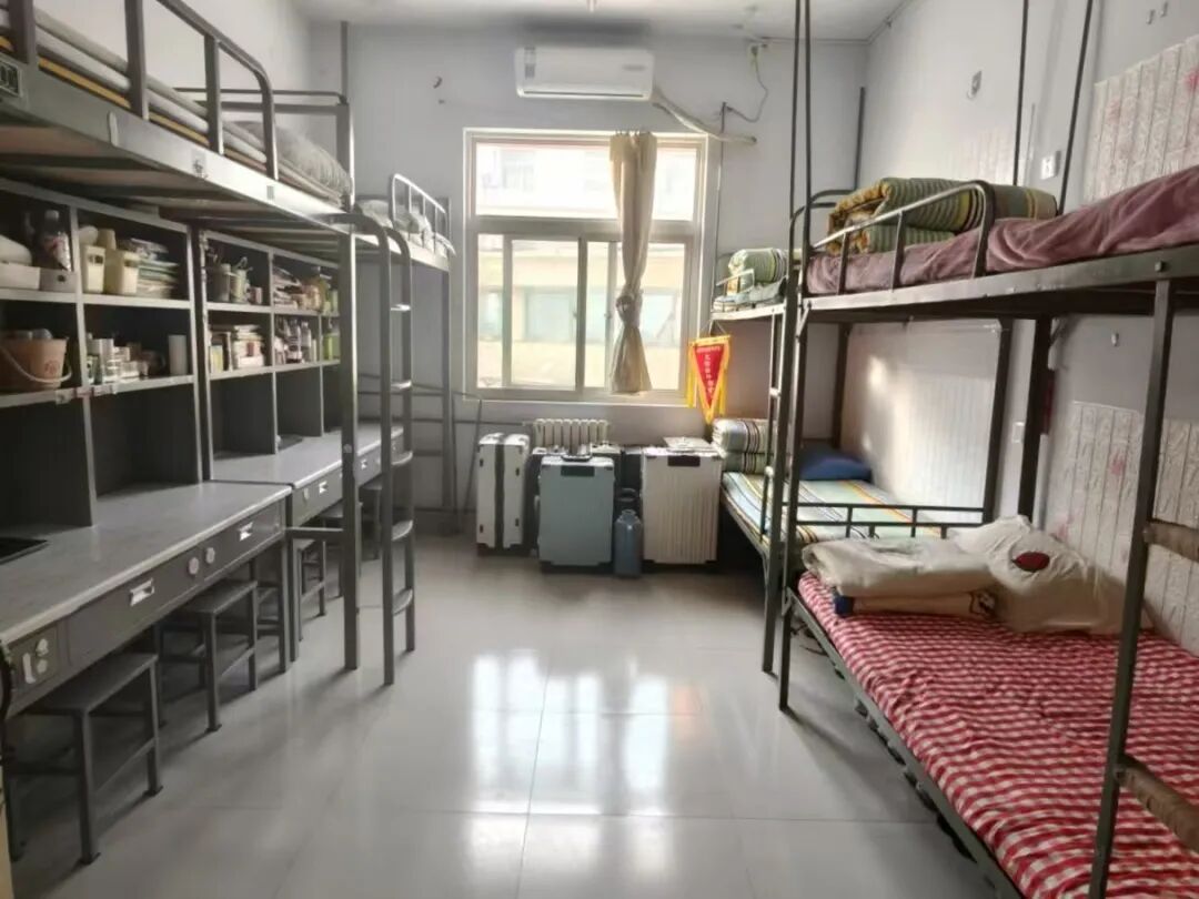 224宿舍呈现出舒适整洁的居住环境。室内地面洁净光亮,书桌物品摆放有序、分类清晰,体现严谨生活作风;床铺收拾规范整齐,被褥叠放整齐划一。窗户明亮通透,窗帘洁净平整,阳光洒落其间,营造出安静的居住氛围。