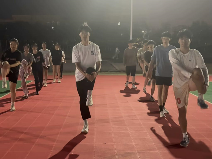 本次赛前训练分设短跑、长跑、跳跃及团体项目四大组别,通过多元化训练提升运动员综合实力。物电学子蓄势待发,短跑健儿们俯身压低身体,以强劲的力量蹬地起跑;长跑选手们匀称地调整着呼吸节奏,稳健的步伐踏过跑道,他们的口号声此起彼伏,汇成操场之上最动听的青春交响曲。沙坑边缘,跳远运动员们反复琢磨起跳的角度;跑道之上,接力赛的队员们精准无误地传递着接力棒,跌倒了,他们迅速地重新站起,继续前行;动作不够完美,经验丰富的学长会细致地示范并予以指导。每一次接力棒的传递都凝聚着信任与默契,团队成员们心往一处想,劲往一处使,通过无数次的默契合作,将“团队精神”这一理念深深地镌刻在了他们的行动之中。在夜晚路灯的照射下,运动健儿们每一滴滑落的汗水都折射出坚毅的光泽,在夜色中勾勒出永不言弃的剪影。每一位运动员都深知,自己的每一滴汗水不仅是为了个人的荣誉,更是为了集体的辉煌。学院老师多次来到操场,为运动员的刻苦训练注入动力,激励他们勇于突破自我,追求卓越。学生会同学也全力做好后勤保障工作,为训练的有序开展全程保驾护航。