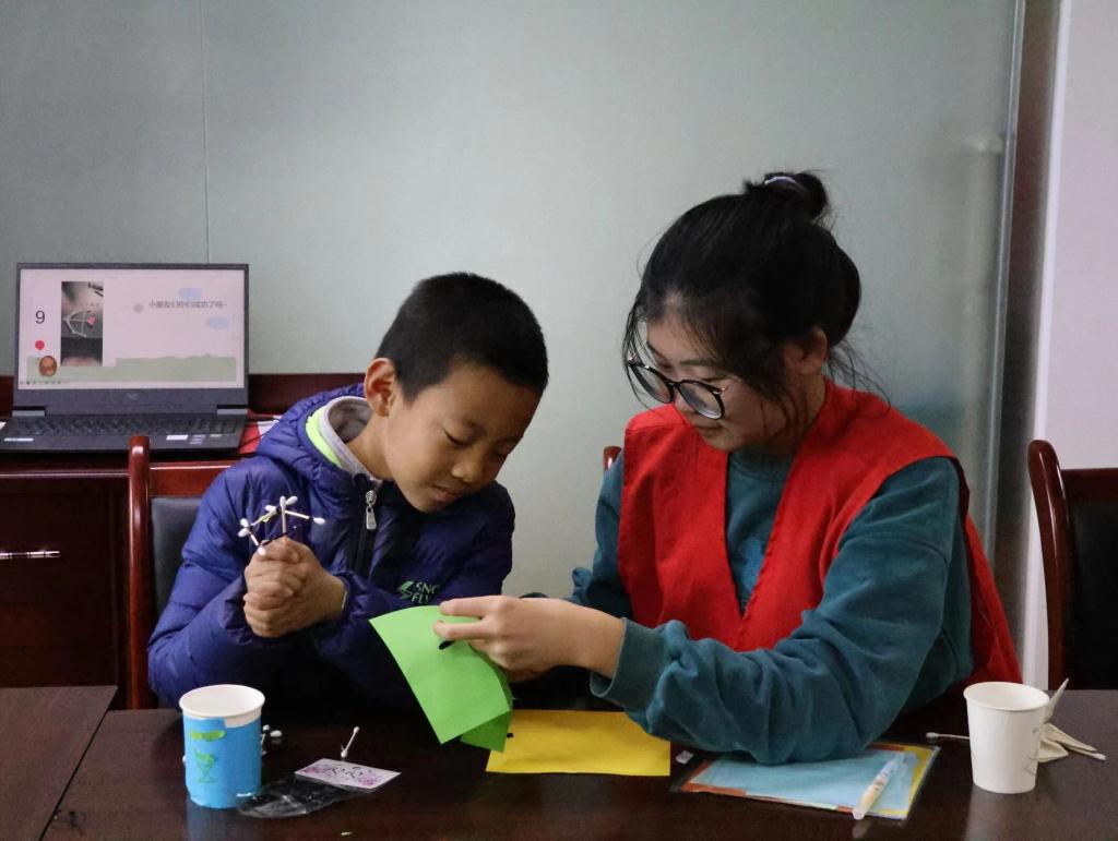 活动伊始,志愿者向社区孩子们展示提前准备好的折纸作品,将折纸材料分发给在场的学生们,并对折纸步骤进行详细讲解与实际操作。活动过程中,孩子们认真听讲并动手实践,遇到困难积极举手提问,志愿者也进行了耐心细致地解答,帮助他们按照步骤完成折纸作品。