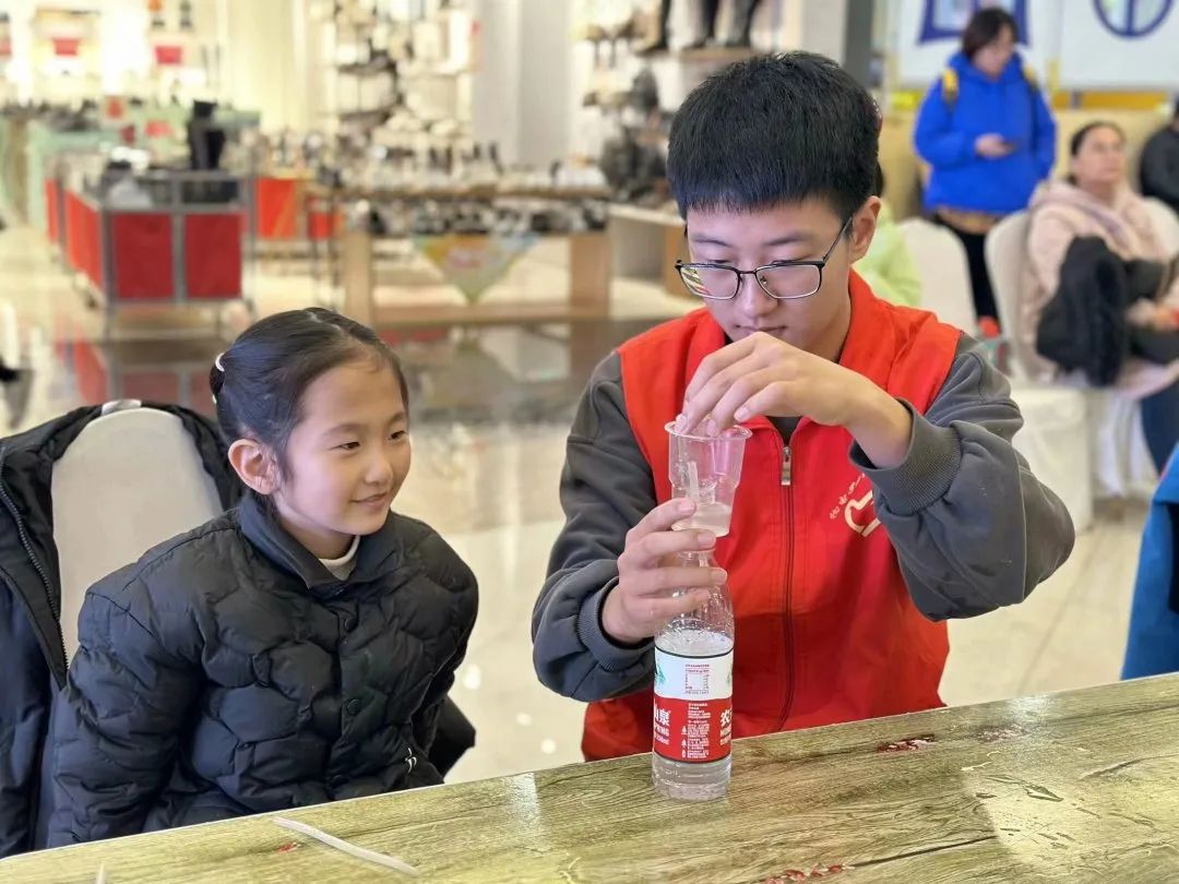 活动前,志愿者们准备了一系列有趣、富有互动性的科学实验,旨在通过实践操作的方式,激发学生们对科学学习的兴趣。活动中,志愿者用简单的实验工具和易于理解的语言向同学们阐述实验原理,同时通过实验"自由的水"让学生们亲身感受到水的压强与深度之间的关系并展示了两个水杯之间快速平分水的现象。现场的同学们也踊跃提问,与志愿者充分互动,志愿者对现场学生的问题逐一耐心解答。