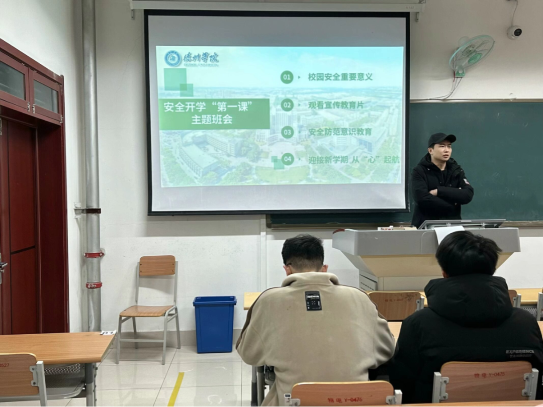 班会伊始,辅导员老师介绍了本学期的学习计划和安排,期望同学们能够尽快调整状态,专心投入学习,打牢专业基础。此外,辅导员老师还对校园安全、校园防诈骗进行全面普及,要求学生增强安全警醒意识,提高辨别能力,筑牢个人安全防线。