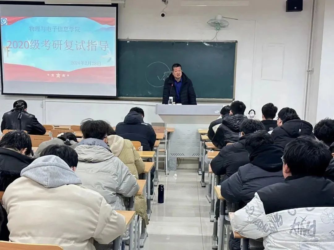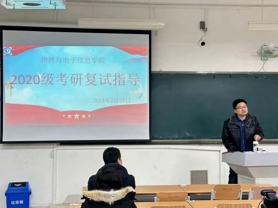 为扎实推进2024届考研学生的复试工作,帮助考研学生熟悉复试规则与程序,做好考研复试指导和服务保障工作,物电学院于2月28日在明理楼0216教室开展2024届考研复试指导会。