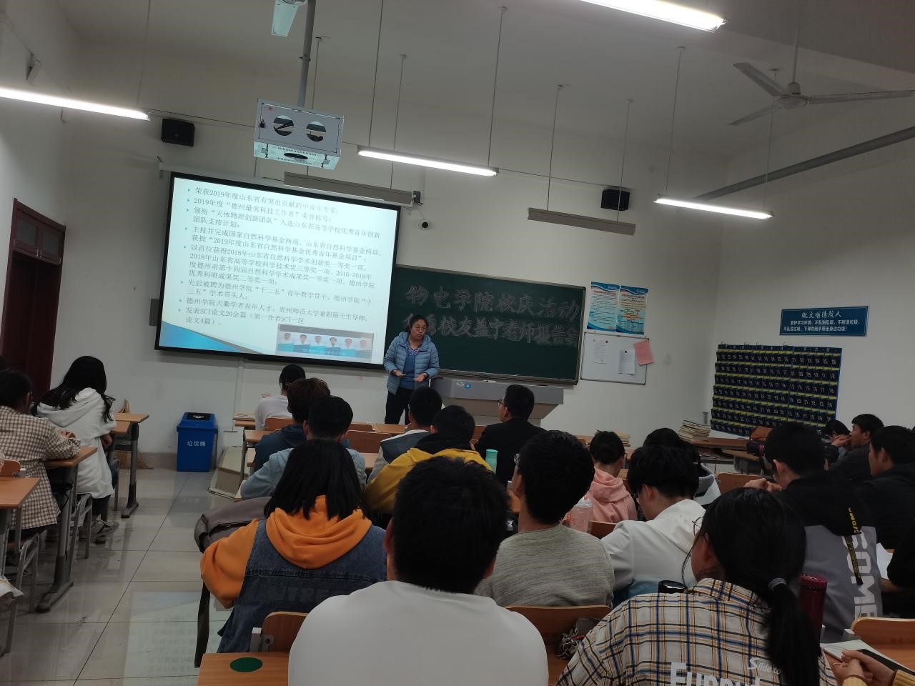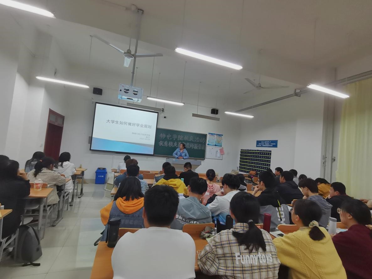 为增加大学生就业知识,增强同学们对所学专业的认识。4月29日晚,物电学院于明理楼0125教室开展“大学生如何做好学业规划”专题讲座。物电学院优秀校友盖宁老师主讲,物电学院19级物理学和20级物理学全体学生到场。