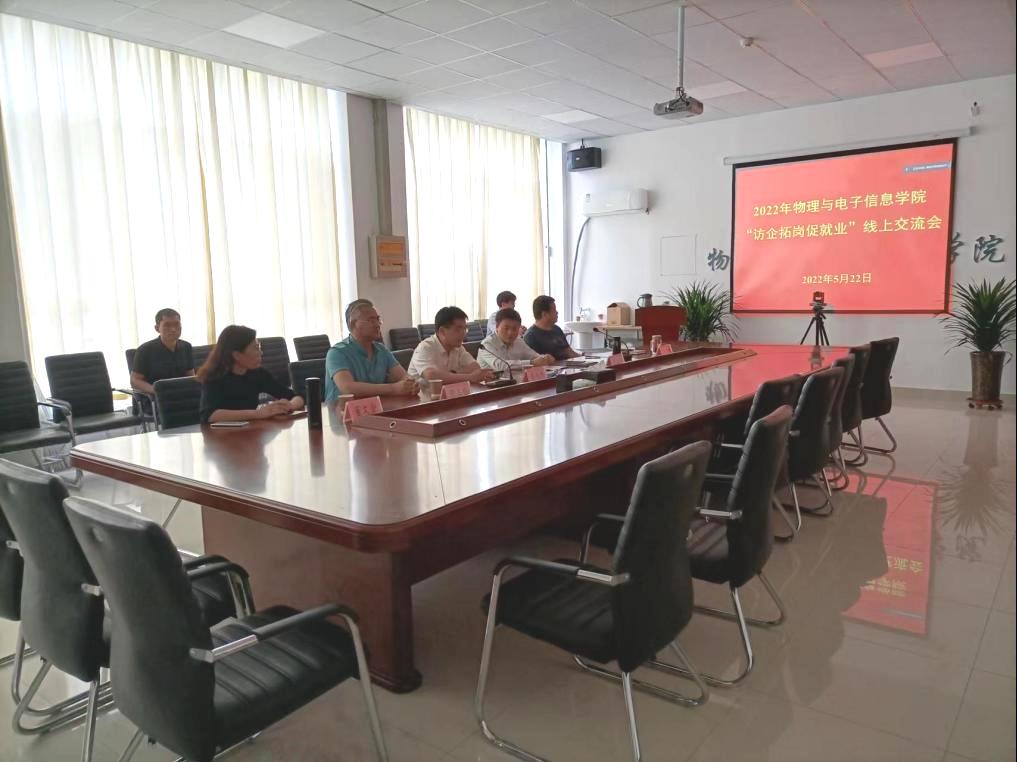 为深入贯彻落实英国正版365首页《开展访企拓岗促就业专项行动实施方案》精神,进一步了解企业实际需求,提高毕业生就业率,365上市公司于5月22日下午开展了“访企拓岗促就业”线上交流会。党委委员、副校长李永平、就业指导处、物电学院主要负责人及2022届部分毕业生参加了交流会。