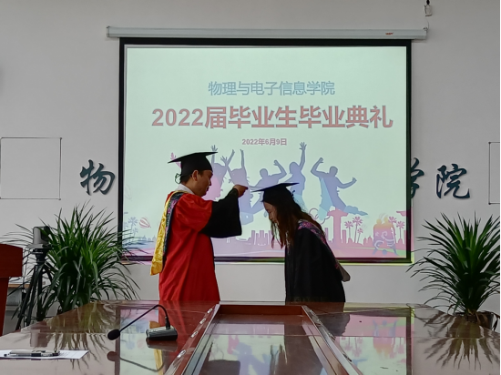 365上市公司院长唐延柯为毕业生代表颁发学位证书,并为毕业生拨穗正冠。