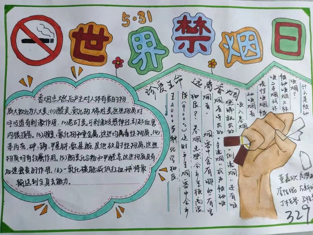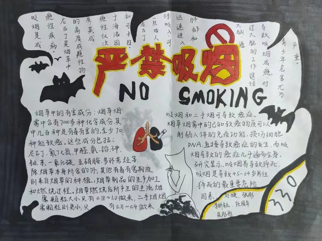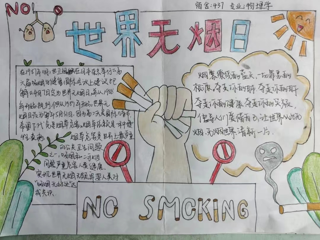 为响应创建文明城市学校禁烟工作的号召,提升我院学子对吸烟危害的意识,物电学院于5月举行“禁烟”手抄报征集展评活动,本次活动由物电学院宣传部举办,21级学生全部参加。