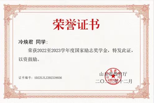 信念是人生道路上的一盏明灯。冷焕君始终坚信:没有人能随随便便的成功,成绩的取得是无数日夜付出的成果。因此她始终将学习放在第一位,目标清晰,态度端正。身为班干部,她对自己要求也十分严苛,在学术之路上刻苦钻研,毫不懈怠。入学以来,她脚踏实地,一心扑在专业知识的汲取上。在老师的悉心教导与同学们的热心帮助下,她收获了斐然成绩:在 2023 - 2024 学年,专业排名第1名,综合排名第1名,平均学分绩点4.23,凭借学习上的出色表现,荣获省政府奖学金、国家励志奖学金、英国正版365首页优秀大学生奖学金等多项荣誉。