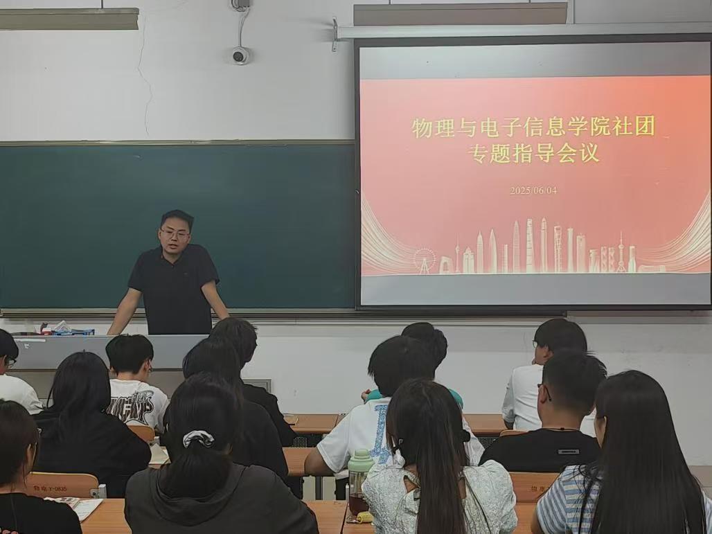 为深化学生社团规范化建设,充分发挥学生社团在校园文化建设中的重要作用,进一步提升社团活动的育人实效,6月4日,物电学院在明理楼215召开2025年社团专题指导会议。