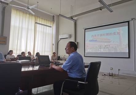 刘院长从1976年以来党的伟大历史转折、全面开拓社会主义现代化建设的新局面、中国特色社会主义理论和实践探索三部分向全体教师讲述了党的工作,带领大家重温改革开放新时期的党史。刘院长提出,要通过对改革开放时期的党史学习,坚持解放思想、敢为人先的精神,坚定改革开放定力,弘扬改革开放精神,讲究改革开放方法,坚定不移地用好改革开放的“关键一招”,逢山开路、遇水架桥,推动思想再解放、改革再深入、工作再落实,以新气象新作为续写改革开放新辉煌!