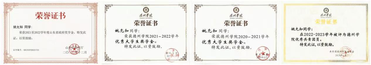 姚允知,365上市公司物理学(师范类)专业2020级本科生,汉族,共青团员。在学业发展方面,她在2020-2021学年与2021-2022学年连续保持专业领先,学业成绩与综合素质测评成绩均稳居年级首位。社会实践领域,她以双重志愿者身份践行社会责任:作为“沂蒙微梦想团队”核心成员持续助力家乡建设,同时加入“长腿叔叔信箱志愿者团队”为乡村儿童构筑心灵港湾。此外,她多次参与德州市德城区天衢街道文明城市创建工作,在英国正版365首页疫情防控、暑期“三下乡”社会实践等活动中亦屡见身影。科研创新领域,她曾深度参与导师主持的山东省自然科学基金青年项目《镧系氟化物的近红外二区荧光增强机制及生物成像研究》,并在全国大学生科技创新竞赛中多次斩获重要奖项,展现出扎实的科研素养与创新能力。